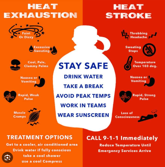 Pet safety: Do NOT walk your pet on the hot asphalt, this will burn their feet. Keep them cool and hydrated and in the shade.